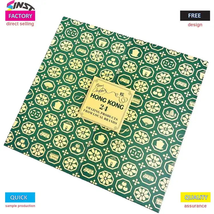 이 강림절 달력 선물 상자는 24개의 서랍과 1개의 특별한 수납공간을 갖춘 휴일 카운트다운 디자인을 갖추고 있어 크리스마스 언박싱의 예식 느낌을 완벽하게 복원합니다. 초콜릿, 뷰티 샘플, 소형 액세서리 등 다양한 제품에 적합합니다. 금박 인쇄와 결합된 짙은 녹색 배경은 도시의 스카이라인과 별 패턴으로 보완되어 고급 질감을 발산할 뿐만 아니라 축제 분위기를 발산하여 선반 디스플레이를 매우 매력적으로 만듭니다.
