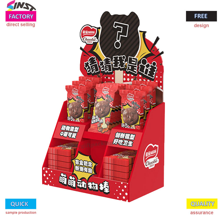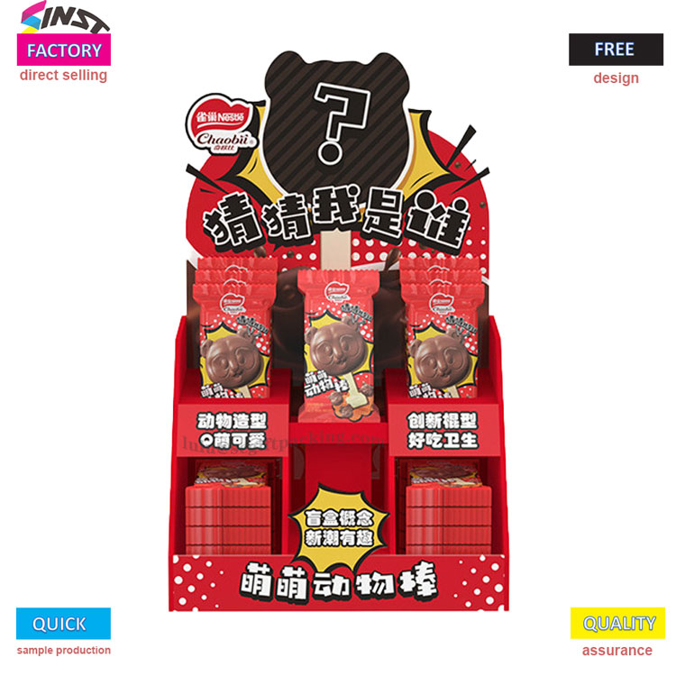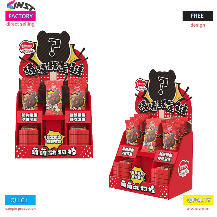 이 애완 동물 스낵 판지 PDQ 디스플레이 박스는 밝은 붉은 색 구성표와 귀엽고 장난스러운 디자인을 특징으로합니다. 이 상자에는 "동물 모양의 Q 귀여운", "혁신적인 음식 유형 맛있고 위생적인"및 "블라인드 박스 컨셉 트렌디"에 중점을 둔 여러 층으로 붉은 동물 모양의 간식 (귀여운 애완 동물 패턴으로 인쇄)이 표시됩니다. 애완 동물 사랑하는 가족을 정확하게 끌어 들이고 눈길을 끄는 터미널 디스플레이를위한 재미있는 마케팅 도구입니다.