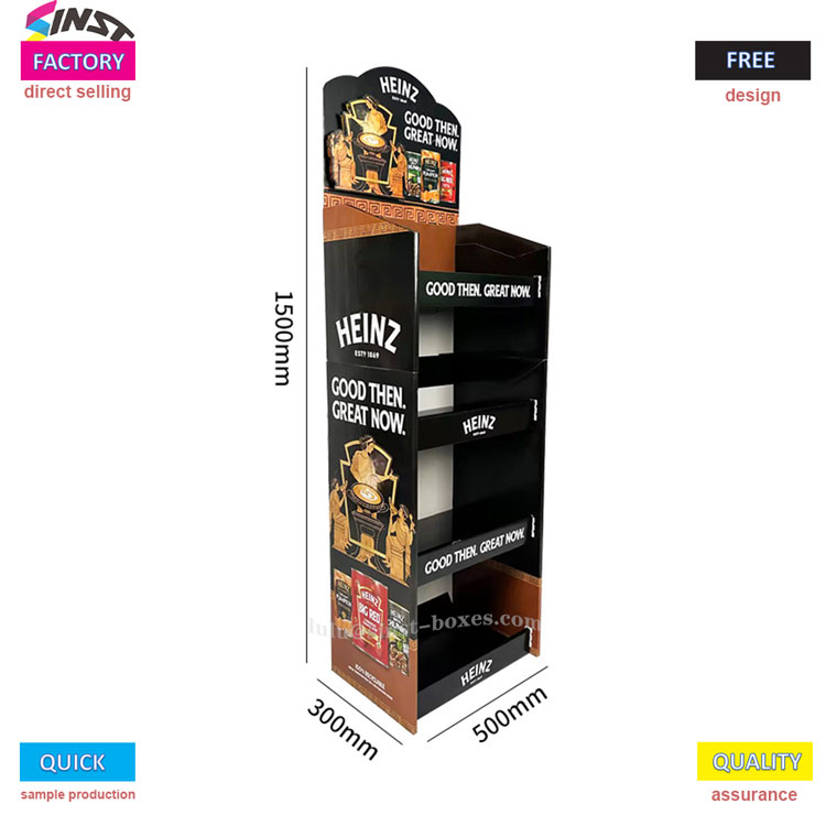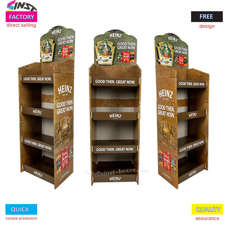 이 토마토 소스 디스플레이 스탠드는 갈색, 검정색, 빨간색의 세 가지 디자인으로 제공됩니다. 다층 개방형 구조로 선반, 측면, 상단에 브랜드 로고와 슬로건을 인쇄하여 브랜드 기억력을 높였습니다. 슈퍼마켓 디스플레이에 적합한 명확한 크기. 효과적으로 관심을 끄는 것은 소스 디스플레이를 위한 눈길을 끄는 도구입니다.
